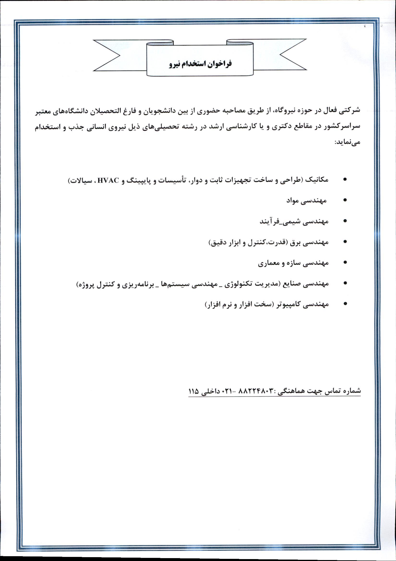 فراخوان استخدام نیروگاه
